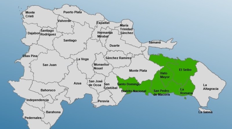 Las provincias colocadas en alerta verde por el COE son: Santo Domingo, San Pedro de Macorís, Hato Mayor, El Seibo, La Romana y el Distrito Nacional, ante la posibilidad de crecidas repentinas de ríos, arroyos y cañadas, así como inundaciones urbanas y rurales.