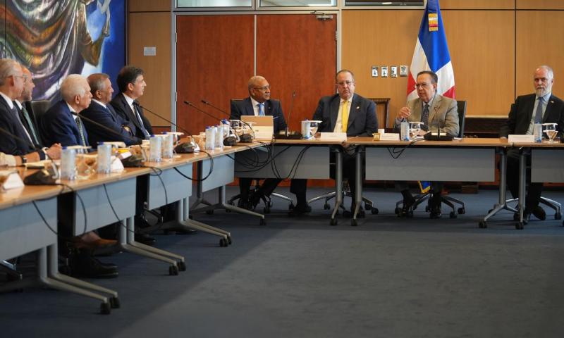 Durante el encuentro, celebrado en la sede del BCRD, Valdez Albizu subrayó que “en un contexto como el actual, de alta incertidumbre y un entorno internacional convulso y complejo, es importante conducirse con prudencia para preservar la estabilidad y afianzar la confianza de los inversionistas y los agentes económicos externos e internos”.